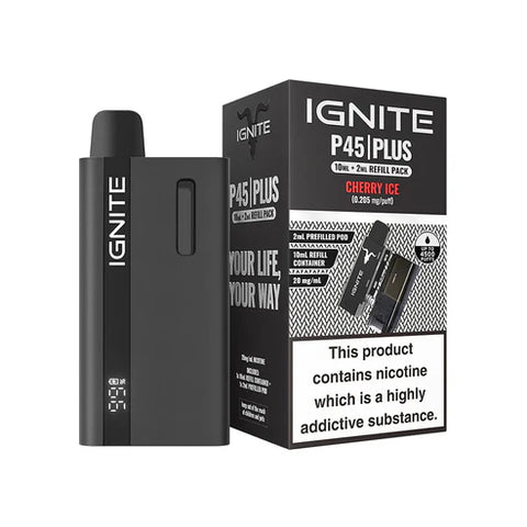 The Ignite P45 Plus Prefilled Vape Kit is a brand new, easy-to-use prefilled pod kit from Ignite! This sleek, simple kit delivers up to 4500 puffs of delicious flavour from it's 10+2ml prefilled pod system.